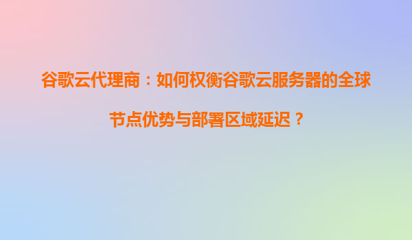 2025-10-21谷歌云代理商:如何权衡谷歌云服务器的全球节点优势与部署区域延迟? 一、谷歌云的全球节点优势解析 谷歌云(GoogleCloudPlatform,GCP)拥有覆盖全球的26个云区域和79个可用区,其基础设施网络遍布北美...