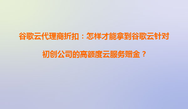 2025-10-19谷歌云代理商折扣:如何获取针对初创公司的高额度云服务赠金? 一、谷歌云的核心优势 谷歌云(GoogleCloud)作为全球领先的云计算平台,凭借其技术实力和生态...
