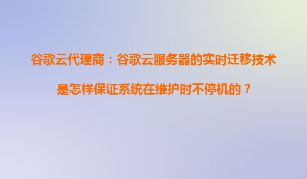 2025-10-19谷歌云代理商:谷歌云服务器的实时迁移技术是怎样保证系统在维护时不停机的? 引言 在当今数字化时代,企业对于云服务的依赖程度越来越高,尤其是高可用性和连续性的需求。谷歌云(GoogleCloud)作为全球...