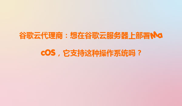 2025-10-18谷歌云代理商指南:能否在谷歌云服务器上部署macOS? 一、谷歌云对macOS的官方支持现状 截至2023年,谷歌云平台(GCP)不提供原生macOS操作系统的云服务器实例...