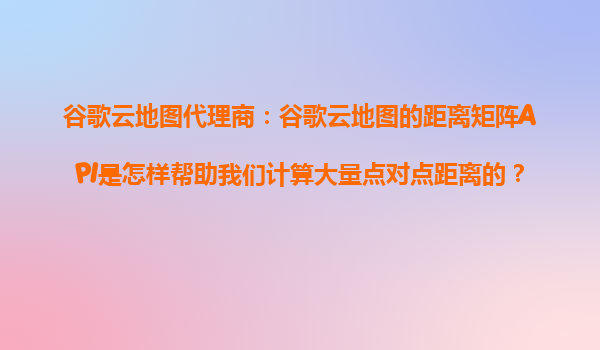 2025-10-18谷歌云地图代理商:谷歌云地图的距离矩阵API是怎样帮助我们计算大量点对点距离的? 一、距离矩阵API的核心功能与应用场景 谷歌云地图的距离矩阵API是一种高效的...