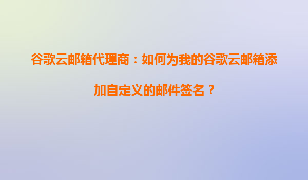 2025-10-18谷歌云邮箱代理商指南:如何为您的谷歌云邮箱添加自定义邮件签名 在当今数字化办公环境中,一封专业的电子邮件往往能给人留下深刻的印象。而邮件签名作为邮件的重要组成部分,不仅能展示您的联系方式,还能...