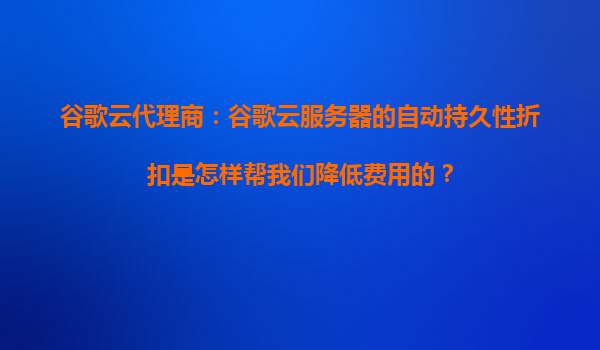 2025-10-17谷歌云代理商:谷歌云服务器的自动持久性折扣如何帮您降低费用? 一、引言 在当今数字化时代,云计算已成为企业IT基础设施的核心组成部分。然而,随着业务规模的扩大,云服务成本的管理也变得越来越重...