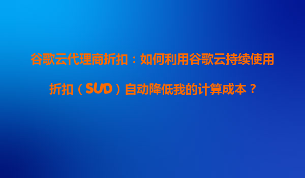 2025-10-17谷歌云代理商折扣:如何利用谷歌云持续使用折扣(SUD)自动降低我的计算成本? 一、谷歌云的核心优势 谷歌云(GoogleCloudPlatform,GCP)作为全球领先的云计算服务提供商,凭借其强大的基础设施和创...