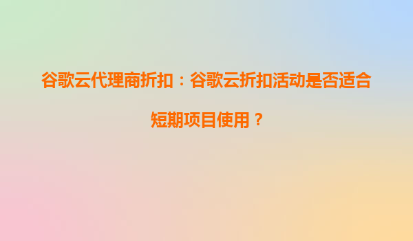 2025-10-15谷歌云代理商折扣:谷歌云折扣活动是否适合短期项目使用? 一、谷歌云的核心优势 谷歌云(GoogleCloudPlatform,GCP)作为全球领先的云计算服务提供商,凭借其强...