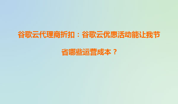 2025-10-15谷歌云代理商折扣:谷歌云优惠活动能让我节省哪些运营成本? 引言 在数字化转型的浪潮中,云计算已成为企业提升效率、降低成本的核心工具。作为全球领先的云服务提供商...