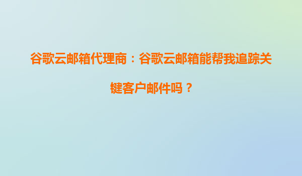 谷歌云邮箱代理商:谷歌云邮箱能帮我追踪关键客户邮件吗? 一、谷歌云邮箱的核心优势 作为全球领先的企业邮箱解决方案,谷歌云邮箱(GoogleWorkspace)凭借其强大的功能和高可靠性...