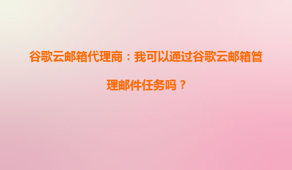 2025-10-14谷歌云邮箱代理商:我可以通过谷歌云邮箱管理邮件任务吗? 在现代商业环境中,高效的邮件管理是企业沟通和协作的核心。谷歌云邮箱(GoogleWorkspace,原GSuite)作为全球领先的企业邮箱解决方案,提供了强大的...