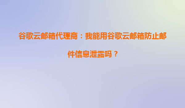2025-10-14谷歌云邮箱代理商:我能用谷歌云邮箱防止邮件信息泄露吗? 谷歌云邮箱的信息安全优势 在当前数字化时代,邮件作为企业及个人重要的沟通工具,信息泄露风险日益凸显。谷歌云邮箱(GmailforBusiness)...