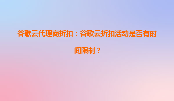2025-10-13谷歌云代理商折扣活动的时效性 谷歌云代理商提供的折扣活动通常会有时间限制,具体时效取决于代理商的政策和谷歌云的阶段性促销计划。常见的折扣形式包括新用户首单优惠、特定产品限时折扣或季度性促销等。建议用...