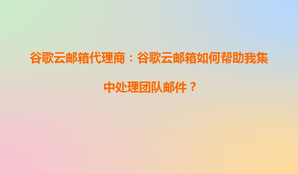 2025-10-13谷歌云邮箱代理商:谷歌云邮箱如何帮助我集中处理团队邮件? 引言 在当今快节奏的商业环境中,高效的团队协作和沟通是成功的关键。邮件作为企业沟通的重要工具...