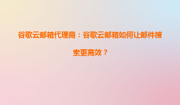 2025-10-13谷歌云邮箱代理商:谷歌云邮箱如何让邮件搜索更高效? 强大的搜索功能:精准定位每一封邮件 谷歌云邮箱(Gmail)凭借其强大的搜索功能,让用户能够快速、精准地找到所需邮件。无论是通过关键词、发件人...