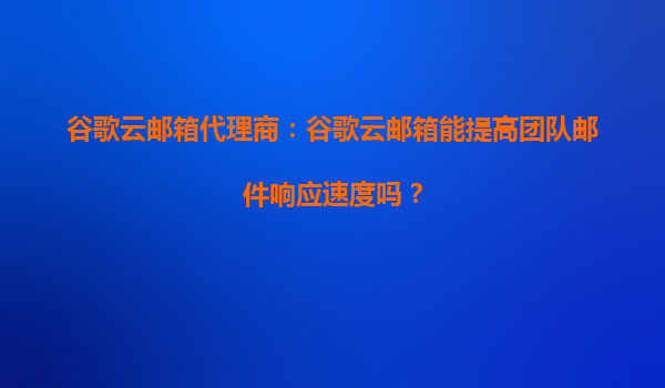 2025-10-13谷歌云邮箱代理商:谷歌云邮箱能提高团队邮件响应速度吗? 在现代商业环境中,高效的团队协作和快速的邮件响应速度是企业成功的关键因素之一。谷歌云邮箱(GoogleWorkspace,原GSuite)作为全球领先的企业邮...