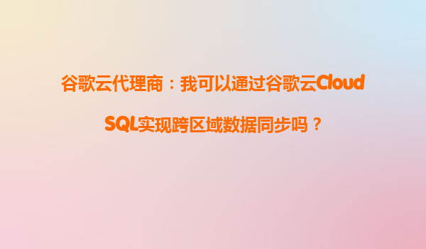 2025-10-13谷歌云代理商:我可以通过谷歌云CloudSQL实现跨区域数据同步吗? 在现代云计算环境中,数据的高可用性和跨区域同步是许多企业的核心需求。谷歌云作为全球领先的云服务提供商,其CloudSQL服...