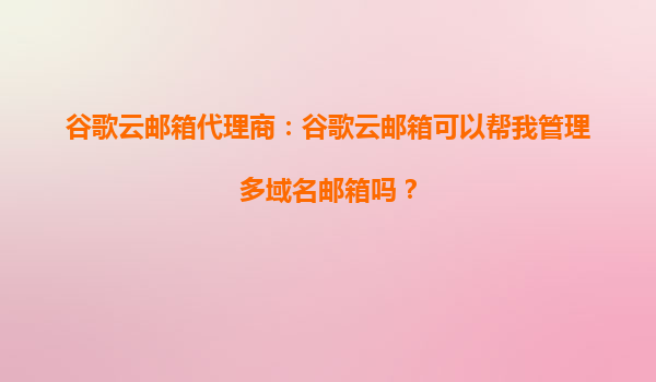 2025-10-13谷歌云邮箱代理商:谷歌云邮箱可以帮我管理多域名邮箱吗? 引言 在当今数字化时代,企业通常需要管理多个域名下的邮箱,以满足业务扩展或品牌多样化的需求。如果您正在寻找一款能够高效管理多...