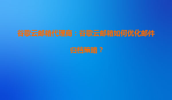 2025-10-13谷歌云邮箱代理商:谷歌云邮箱如何优化邮件归档策略? 1.引言 在数字化办公时代,电子邮件已成为企业和个人日常沟通的重要工具。谷歌云邮箱(GoogleWorkspace)凭借其强大的功能和稳定的性能,成为众多企...