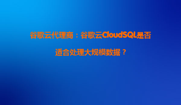 2025-10-13谷歌云代理商:谷歌云CloudSQL是否适合处理大规模数据? 引言 在当今数据驱动的时代,企业需要处理和分析海量数据以支持业务决策。数据库的选择成为关键因素之...