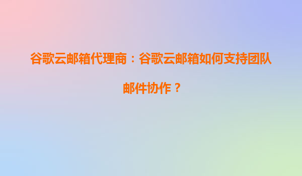 2025-10-12谷歌云邮箱如何支持团队邮件协作 无缝集成的团队协作平台 谷歌云邮箱(Gmail)作为谷歌工作空间(GoogleWorkspace)的核心组件,天然与GoogleMeet、GoogleDrive、GoogleDocs等工具深度集成。团队成员无...