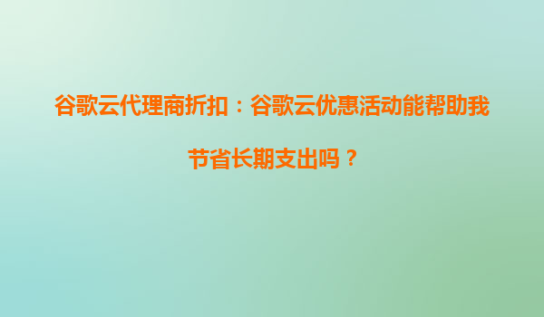 2025-10-10谷歌云代理商折扣:谷歌云优惠活动能帮助我节省长期支出吗? 引言 在数字化转型的浪潮中,云计算已成为企业提升效率、降低成本的核心工具。谷歌云(GoogleCloud)作为全球领先的云...