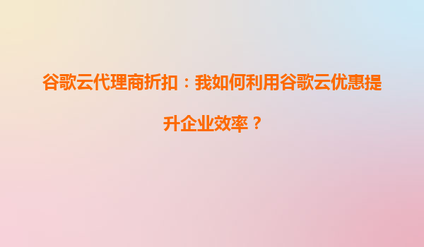 2025-10-09谷歌云代理商折扣:谷歌云折扣活动能为我的项目节约开支吗? 引言 在当今数字化时代,云计算已成为企业运营和项目开发的核心基础设施。谷歌云(GoogleCloud)...