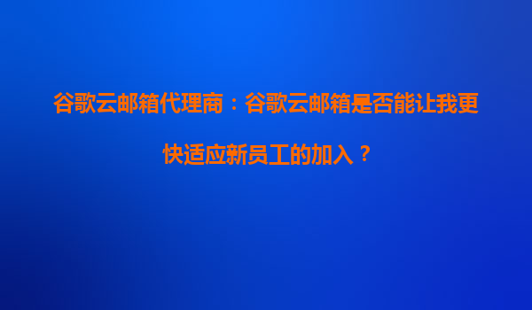 2025-10-07谷歌云邮箱代理商:谷歌云邮箱是否能让我更快适应新员工的加入? 引言 在当今快节奏的商业环境中,企业需要快速适应变化,尤其是新员工的加入。一个高效、可靠的电子邮件系统是确保新员...