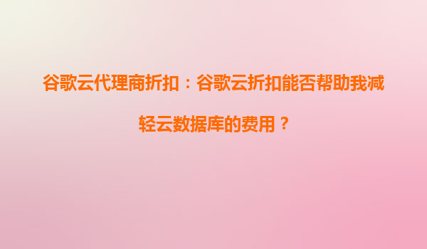 2025-10-05谷歌云代理商折扣:谷歌云折扣能否帮助我减轻云数据库的费用? 在当今数字化时代,云计算已成为企业运营不可或缺的一部分。无论是初创公司还是大型企业,都在寻求高效、稳定且经济的云服务解决方案。谷歌云(Go...