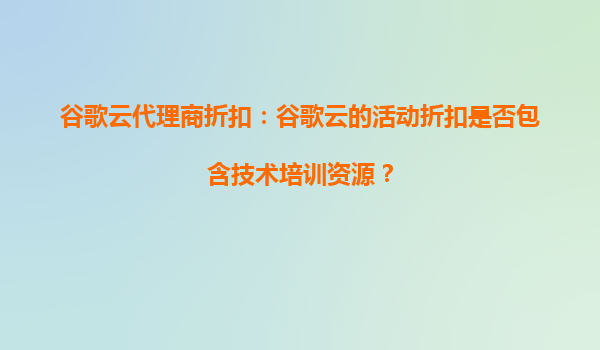 2025-10-05谷歌云代理商折扣:谷歌云的活动折扣是否包含技术培训资源? 引言 随着云计算技术的快速发展,越来越多的企业开始将业务迁移到云端。谷歌云(GoogleCloud)作...