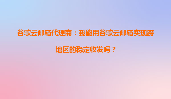 2025-10-04谷歌云邮箱代理商:我能用谷歌云邮箱实现跨地区的稳定收发吗? 引言 在全球化商业环境中,企业对于电子邮件的稳定性和跨地区收发能力要求越来越高。谷歌云邮箱...