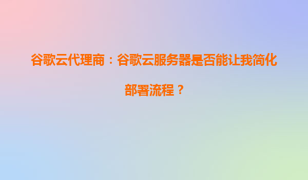 2025-10-04谷歌云代理商:谷歌云服务器是否能让我简化部署流程? 引言 在当今数字化时代,企业对于云计算的需求日益增长。谷歌云(GoogleCloud)作为全球领先的云计算服务提供商之一,凭借其强大...
