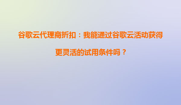 2025-10-04谷歌云代理商折扣:解锁更灵活的试用条件 谷歌云(GoogleCloud)作为全球领先的云计算服务提供商,凭借其强大的基础设施、创新的技术解决方案以及灵活的商业模式,吸引了众多企业和开发者。对于初次接触谷歌云的...