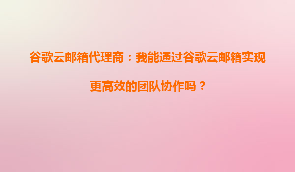 2025-10-04谷歌云邮箱代理商:我能通过谷歌云邮箱实现更高效的团队协作吗? 在当今快节奏的商业环境中,高效的团队协作是企业成功的关键因素之一。谷歌云邮箱(GoogleWorkspace,原GSuite)作为全球领先的企业邮箱和...