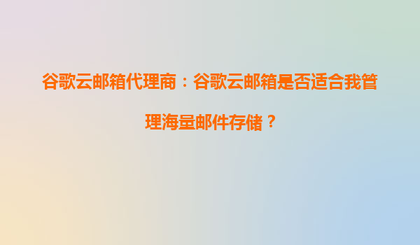 2025-10-04谷歌云邮箱代理商:谷歌云邮箱是否适合我管理海量邮件存储? 一、海量邮件存储的挑战 随着企业数字化进程的加速,邮件作为核心沟通工具,其数据量呈指数级增长...
