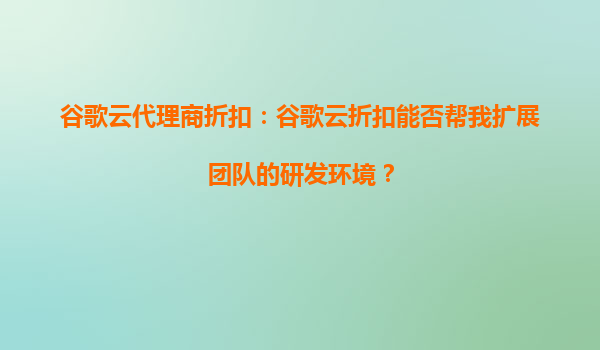2025-10-04谷歌云代理商折扣:谷歌云折扣能否帮我扩展团队的研发环境? 引言 在当今快速发展的技术环境中,研发团队需要高效、灵活且可扩展的云平台来支持其创新项目。谷歌云(GoogleCloud)作为...