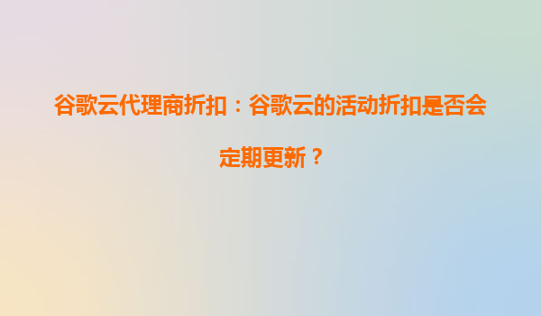 2025-10-03谷歌云代理商折扣:谷歌云的活动折扣是否会定期更新? 谷歌云折扣活动的动态性 谷歌云作为全球领先的云计算服务提供商,其代理商折扣和促销活动确实会根据市场策略和季节性需求进行定期更新。通常,谷歌云会结...