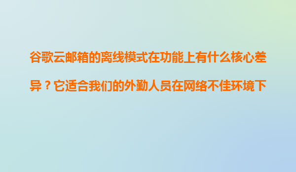 2025-11-09谷歌云邮箱离线模式的核心功能差异与外勤人员适用性分析 一、谷歌云邮箱离线模式的三大核心功能差异 1.1邮件本地化存储与管理 与常规在线模式相比,离线模式会将最近邮件(默认30天内)缓存至本地浏览器存...