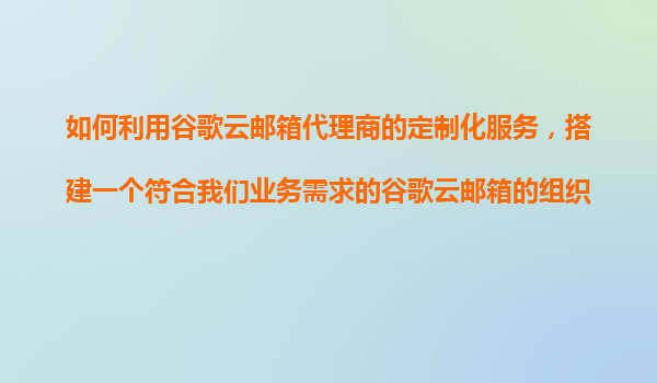 如何利用谷歌云邮箱代理商的定制化服务搭建符合业务需求的GoogleWorkspace组织架构 在数字化转型的浪潮中,企业邮箱作为基础通信工具,其稳定性和管理效率直接影响业务运营。GoogleWorkspace(原GSuite)凭借...