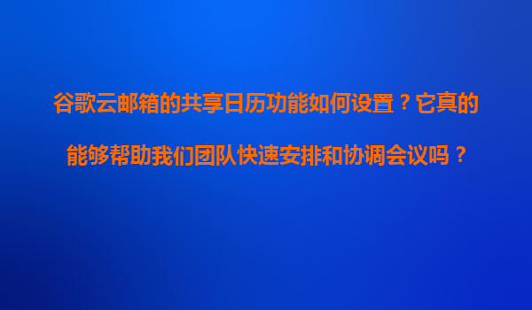 2025-11-08谷歌云邮箱共享日历功能简介 谷歌云邮箱(Gmail)的共享日历功能是谷歌云生态中的重要协作工具,它允许团队成员之间轻松共享日程安排,提升沟通效率。无论是个人日程管理还是团队协作,共享日历都能直观呈现每个人的...