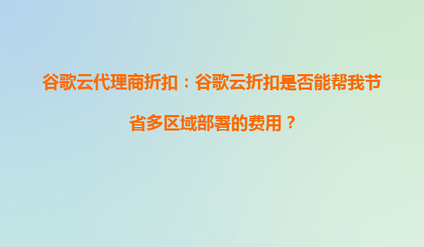 2025-10-02谷歌云代理商折扣:谷歌云折扣是否能帮我节省多区域部署的费用? 谷歌云的优势 谷歌云(GoogleCloudPlatform,GCP)作为全球领先的云计算服务提供商之一,凭借其强大的基础设施、灵活的定价模式...