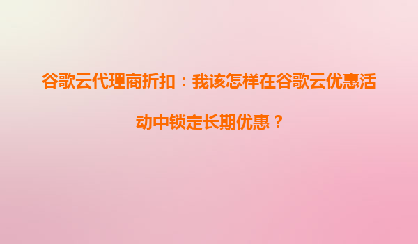 谷歌云代理商折扣:如何锁定长期优惠? 一、谷歌云的优势与代理商的价值 谷歌云(GoogleCloud)作为全球领先的云计算服务提供商,以其高性能计算、全球覆盖的数据中心、...