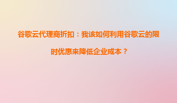 2025-09-30谷歌云代理商折扣:我该如何利用谷歌云的限时优惠来降低企业成本? 一、谷歌云的优势与限时优惠的价值 谷歌云(GoogleCloud)作为全球领先的云计算服务提供商,凭借其高性能基础设...