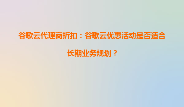 2025-09-30谷歌云代理商折扣:谷歌云优惠活动是否适合长期业务规划? 引言:云计算与长期业务发展的关系 在数字化转型的浪潮中,云计算已成为企业提升效率、降低成本的核心工具。谷歌云作为全球领先的云服务提供商,...