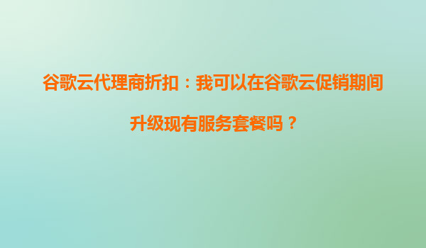 2025-09-30谷歌云代理商折扣:我可以在谷歌云促销期间升级现有服务套餐吗? 一、谷歌云促销活动的特点 谷歌云(GoogleCloud)作为全球领先的云计算服务提供商,经常推出...
