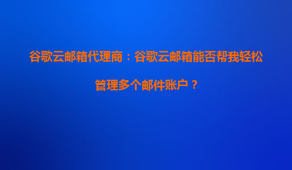 2025-09-30谷歌云邮箱代理商:谷歌云邮箱能否帮我轻松管理多个邮件账户? 在当今快节奏的商业环境中,高效管理多个邮件账户已成为企业和个人的刚需。谷歌云邮箱(GoogleWorkspace,原GSuite)作为全球领先的企业级邮箱...