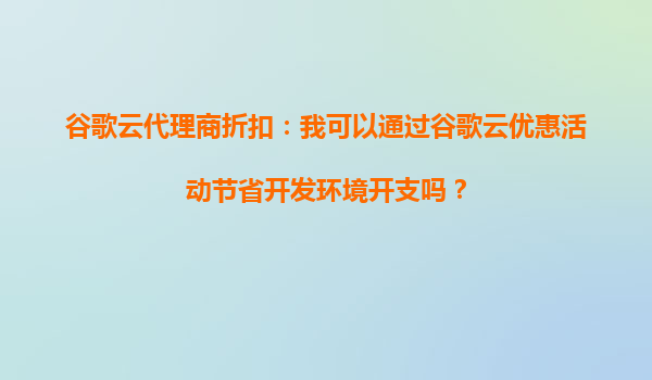 2025-09-29谷歌云代理商折扣:优化开发环境成本的高效选择 在当今快速发展的技术环境中,云计算已成为企业和开发者构建、测试和部署应用的首选平台。谷歌云(GoogleCloud)凭借其卓越的性能、灵活的计费模式和丰富的工具生态...