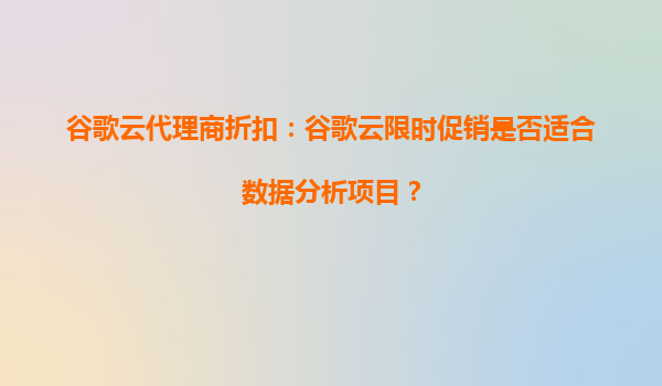 2025-09-29谷歌云代理商限时折扣:数据分析项目的绝佳机遇 在数字化转型浪潮中,数据分析已成为企业决策的核心驱动力。而谷歌云的限时促销活动,尤其是通过代理商提供的额外折扣,为数据分析项目带来了显著的性价比优势。本文...