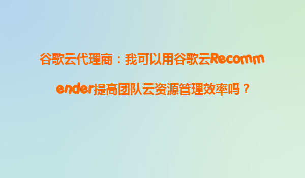 2025-09-28谷歌云代理商:我可以用谷歌云Recommender提高团队云资源管理效率吗? 一、谷歌云Recommender的核心价值 谷歌云Recommender是基于机器学习和大数据分析的智能建议引擎,通过持续监控云资...