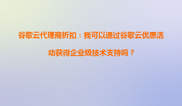 谷歌云代理商折扣:通过优惠活动获得企业级技术支持的可能性解析 一、谷歌云代理商折扣的吸引力 谷歌云(GoogleCloudPlatform,GCP)作为全球领先的云计算服务提供商,凭借其强大的基...