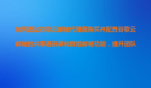 2025-11-08如何通过谷歌云邮箱代理商购买并配置谷歌云邮箱的共享通讯录和群组邮箱功能,提升团队协作效率? 一、谷歌云邮箱的优势概述 谷歌云邮箱(GoogleWorkspace)作为全球领先的企业级邮箱服务,提供了...