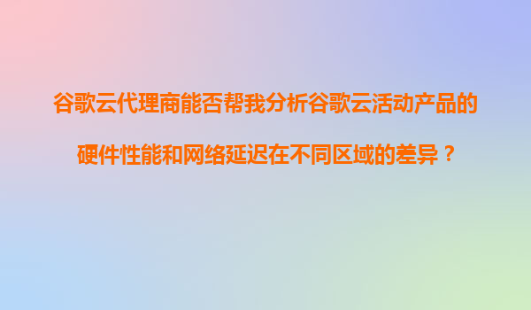 2025-11-08谷歌云代理商如何帮助分析不同区域的硬件性能与网络延迟差异 引言 随着全球数字化进程的加速,企业对于云计算服务的需求日益增长。谷歌云(GoogleCloud)作为全球领先的云计算平台之一,以其高性能的...