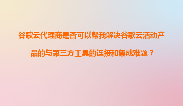 2025-11-08谷歌云代理商如何助力第三方工具的连接与集成 在当今数字化时代,企业往往需要将大量第三方工具与云服务平台进行高效整合。谷歌云代理商在此发挥着关键作用,他们不仅熟悉谷歌云平台(GoogleCloudPlatform,GCP...